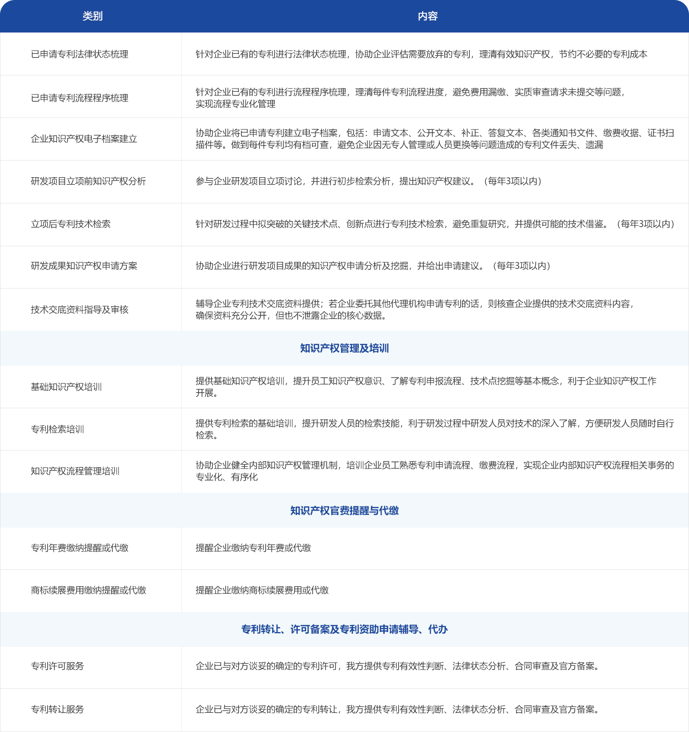 知識產(chǎn)權(quán)顧問服務(wù)內(nèi)容一覽表